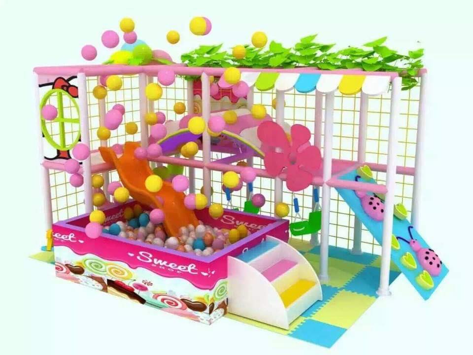 Với bể bóng, cột ném bóng rổ, cầu thang leo đẹp. Sản phẩm này khá được nhiều khu vui chơi yêu thích.