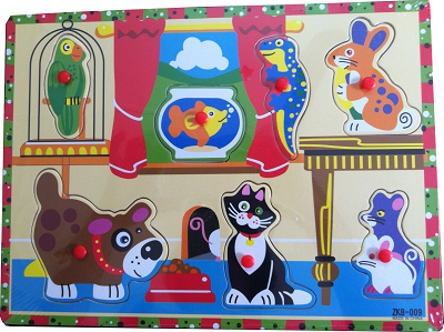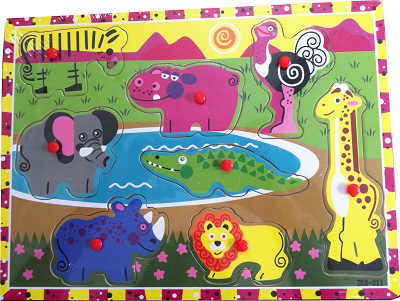 Bảng gỗ to gần bằng khổ giấy A4, có 2 lớp bé nhấc con vật lên ở dưới sẽ có 1 con y như vậy giúp bé nhận biết được giống nhau khác nhau.